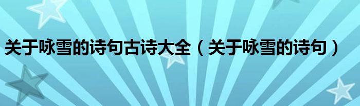 关于咏雪的诗句古诗大全(关于咏雪的诗句)