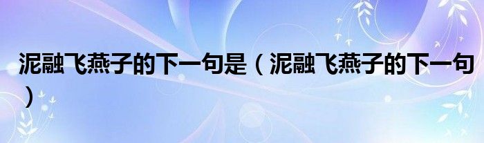 泥融飞燕子的下一句是(泥融飞燕子的下一句)