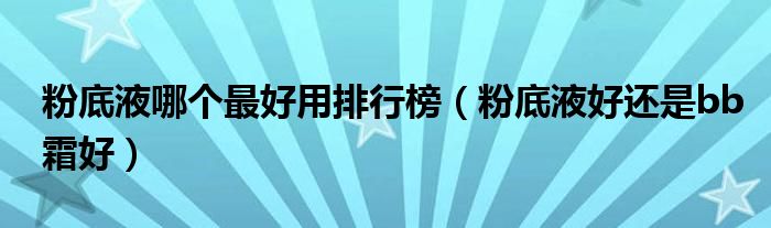 大家好,小乐来为大家解答以下的问题,粉底液哪个最好用排行榜,粉底液好还是bb霜好很多人还不知道,现在让我们一起来看看吧!