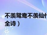大家好,小乐来为大家解答以下的问题,不羡鸳鸯不羡仙上一句,不羡鸳鸯不羡仙的全诗很多人还不知道,现在让我们一起来看看吧!1、《长安古 浏览全文>>
