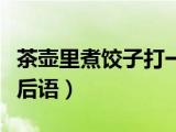 大家好,小乐来为大家解答以下的问题,茶壶里煮饺子打一个成语,茶壶里煮饺子的歇后语很多人还不知道,现在让我们一起来看看吧!1、茶壶里 浏览全文>>