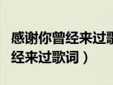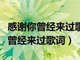 大家好,小乐来为大家解答以下的问题,感谢你曾经来过歌词图片,感谢你曾经来过歌词很多人还不知道,现在让我们一起来看看吧!1、歌词:男 浏览全文>>
