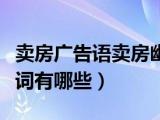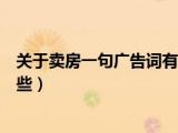 大家好,小乐来为大家解答以下的问题,关于卖房一句广告词有哪些句子,关于卖房一句广告词有哪些很多人还不知道,现在让我们一起来看看吧! 浏览全文>>