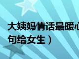 大家好,小乐来为大家解答以下的问题,大姨妈情话最暖心短句给女生,情话最暖心短句给女生很多人还不知道,现在让我们一起来看看吧!1、我 浏览全文>>