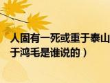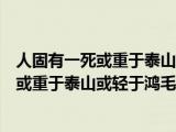 大家好,小乐来为大家解答以下的问题,人固有一死或重于泰山的理解,人固有一死或重于泰山或轻于鸿毛是谁说的很多人还不知道,现在让我们一 浏览全文>>