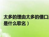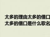 大家好,小乐来为大家解答以下的问题,太多的理由太多的借口是什么歌曲?,太多的理由太多的借口是什么歌名很多人还不知道,现在让我们一起 浏览全文>>