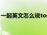 大家好,小乐来为大家解答以下的问题,一起英文怎么说怎么写,一起英文怎么说很多人还不知道,现在让我们一起来看看吧!1、一起的英语toget 浏览全文>>