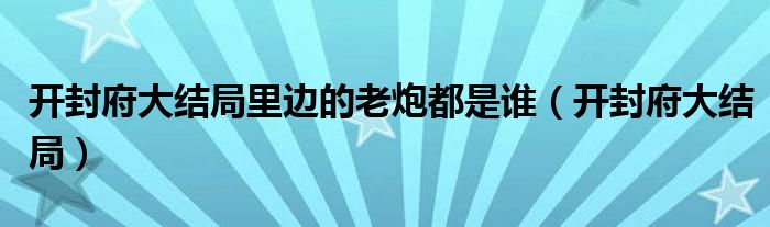 大家好,小乐来为大家解答以下的问题,开封府大结局里边的老炮都是谁,开封府大结局很多人还不知道,现在让我们一起来看看吧!