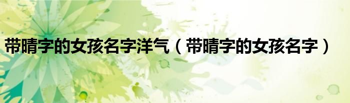带晴字的女孩名字洋气(带晴字的女孩名字)