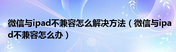 微信与ipad不兼容怎么解决方法(微信与ipad不兼容怎么办)
