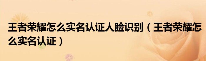 王者荣耀怎么实名认证人脸识别(王者荣耀怎么实名认证)