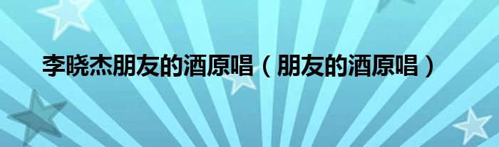 大家好,小乐来为大家解答以下的问题,李晓杰朋友的酒原唱,朋友的酒原唱很多人还不知道,现在让我们一起来看看吧!