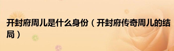 大家好,小乐来为大家解答以下的问题,开封府周儿是什么身份,开封府传奇周儿的结局很多人还不知道,现在让我们一起来看看吧!