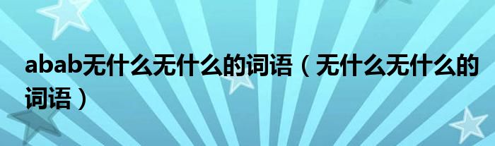 大家好,小乐来为大家解答以下的问题,abab无什么无什么的词语,无什么无什么的词语很多人还不知道,现在让我们一起来看看吧!