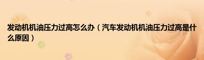 发动机机油压力过高怎么办(汽车发动机机油压力过高是什么原因)