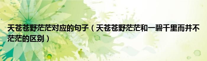 天苍苍野茫茫对应的句子(天苍苍野茫茫和一碧千里而并不茫茫的区别)