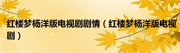 红楼梦杨洋版电视剧剧情(红楼梦杨洋版电视剧)