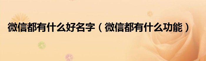 大家好,小讯来为大家解答以上的问题。微信都有什么好名字,微信都有什么功能这个很多人还不知道,现在让我们一起来看看吧!
