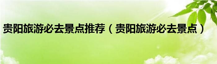 贵阳旅游必去景点推荐(贵阳旅游必去景点)