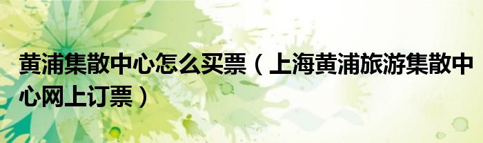 黄浦集散中心怎么买票(上海黄浦旅游集散中心网上订票)