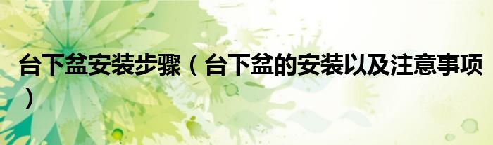 台下盆安装步骤(台下盆的安装以及注意事项)