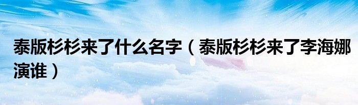 大家好,小乐来为大家解答以下的问题,泰版杉杉来了什么名字,泰版杉杉来了李海娜演谁很多人还不知道,现在让我们一起来看看吧!