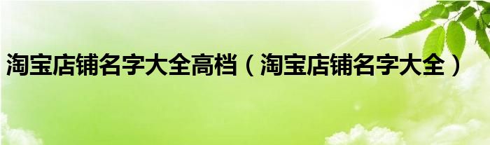 淘宝店铺名字大全高档(淘宝店铺名字大全)