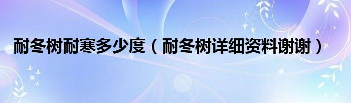 耐冬树耐寒多少度(耐冬树详细资料谢谢)