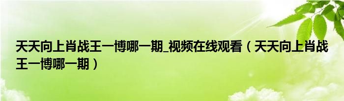 天天向上肖战王一博哪一期_视频在线观看(天天向上肖战王一博哪一期)