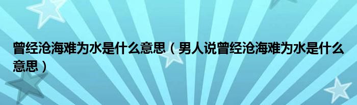 曾经沧海难为水是什么意思(男人说曾经沧海难为水是什么意思)