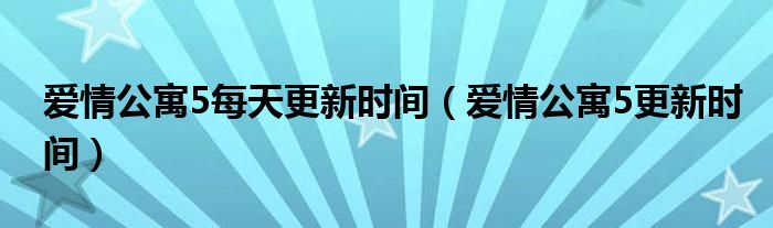 爱情公寓5每天更新时间(爱情公寓5更新时间)