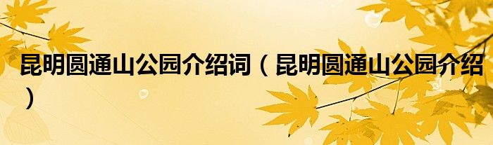 昆明圆通山公园介绍词(昆明圆通山公园介绍)