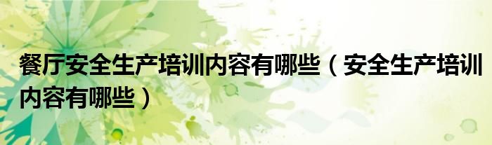 餐厅安全生产培训内容有哪些(安全生产培训内容有哪些)