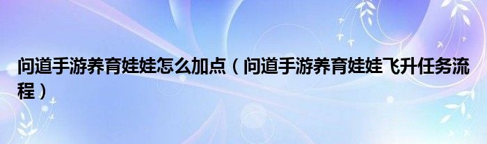 问道手游养育娃娃怎么加点(问道手游养育娃娃飞升任务流程)