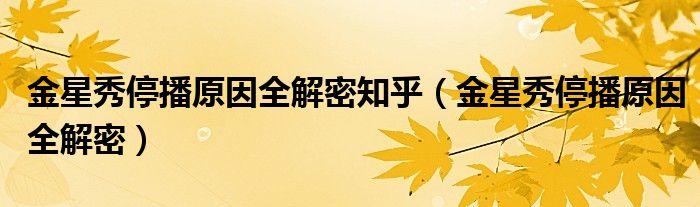金星秀停播原因全解密知乎(金星秀停播原因全解密)