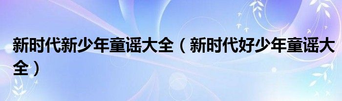 新时代新少年童谣大全(新时代好少年童谣大全)