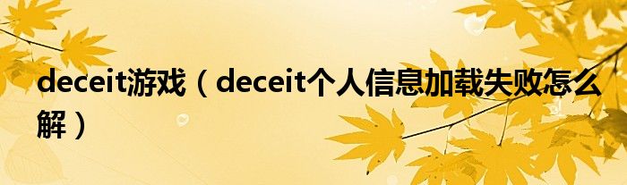 大家好,小讯来为大家解答以上的问题。deceit游戏,deceit个人信息加载失败怎么解这个很多人还不知道,现在让我们一起来看看吧!
