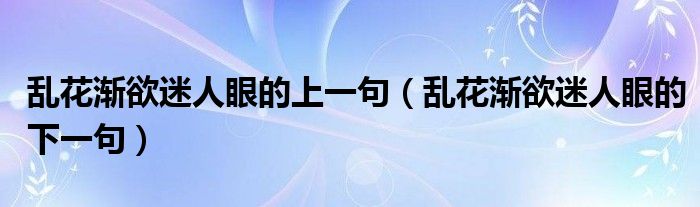 大家好,小乐来为大家解答以下的问题,乱花渐欲迷人眼的上一句,乱花渐欲迷人眼的下一句很多人还不知道,现在让我们一起来看看吧!