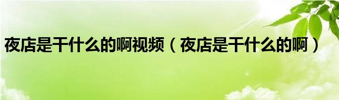 夜店是干什么的啊视频(夜店是干什么的啊)