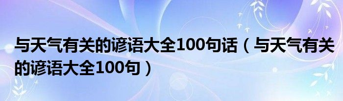 与天气有关的谚语大全100句话(与天气有关的谚语大全100句)