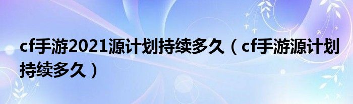 cf手游2021源计划持续多久(cf手游源计划持续多久)
