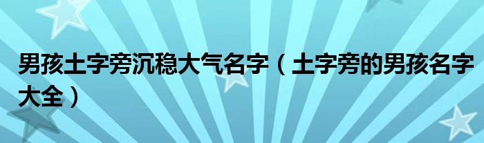 男孩土字旁沉稳大气名字(土字旁的男孩名字大全)