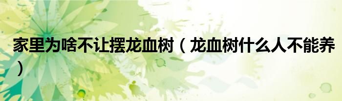 家里为啥不让摆龙血树(龙血树什么人不能养)