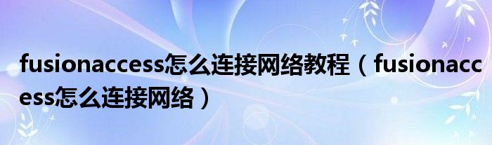 fusionaccess怎么连接网络教程(fusionaccess怎么连接网络)